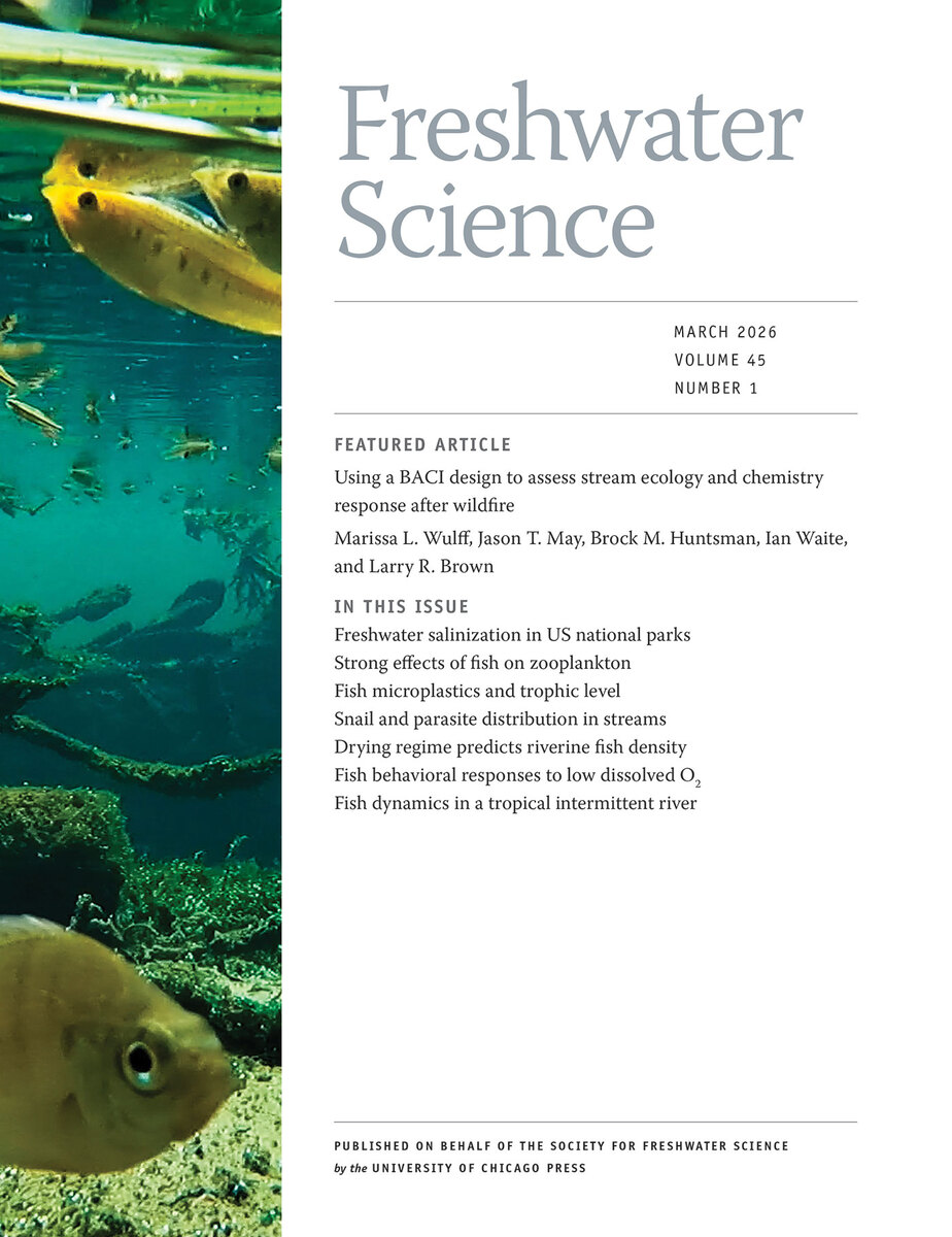 ABOUT THIS BOOKThis is volume 45 issue 1 of Freshwater Science. Freshwater Science (FWS) publishes articles that advance understanding and environmental stewardship of all types of inland aquatic ecosystems (lakes, rivers, streams, reservoirs, subterranean, and estuaries) and ecosystems at the interface between aquatic and terrestrial habitats (wetlands, riparian areas, and floodplains). The journal regularly features papers on a wide range of topics, including physical, chemical, and biological properties of lentic and lotic habitats; ecosystem processes; structure and dynamics of populations, communities, and ecosystems; ecology, systematics, and genetics of freshwater organisms, from bacteria to vertebrates; linkages between freshwater and other ecosystems and between freshwater ecology and other aquatic sciences; bioassessment, conservation, and restoration; environmental management; and new or novel methods for basic or applied research.