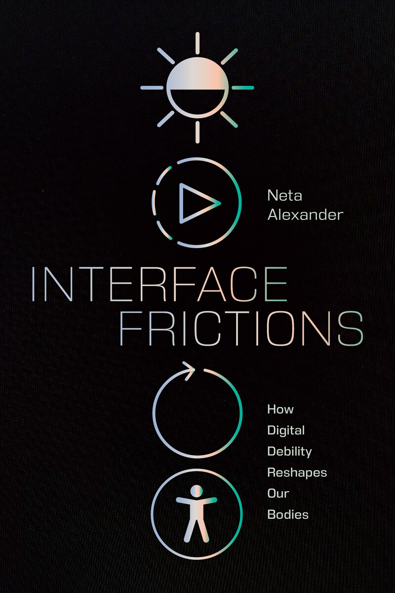“Our bodies are breaking from the strain of being always online. But our debility, Interface Frictions shows, is no accident; it is the intentional result of design decisions to extract profit from us. Neta Alexander’s book is both a passionate manifesto and an incisive history of streaming media retold from the impaired or ‘nonaverage’ user’s perspective. It points us to the ways that access and disability can be reimagined and to the creative strategies by which we might steal back the time to rest and survive.”