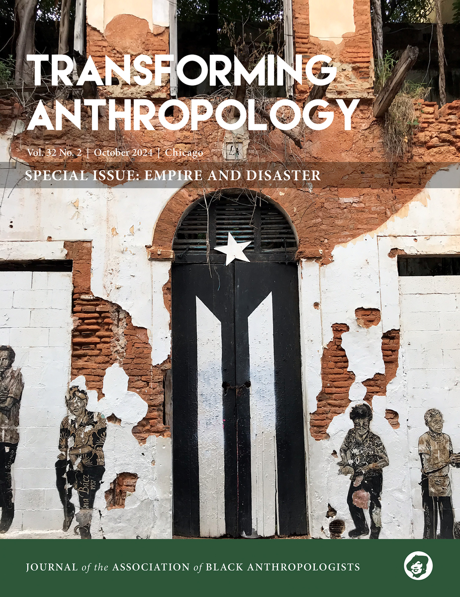 ABOUT THIS BOOKThis is volume 32 issue 2 of Transforming Anthropology. Transforming Anthropology is the flagship journal of the Association of Black Anthropologists. We seek to advance scholarship across the four fields of anthropology and beyond. Transforming Anthropology seeks contributions that reflect the dynamic, transnational, and contested conditions of social worlds — work that pushes the boundaries of discipline and genre. Transforming Anthropology interrogates the contemporary and historical construction of social inequities based on race, ethnicity, class, gender, sexuality, nationality and other invidious distinctions. We remain committed to publishing material that generates dialogues among communities of scholars, activists, artists, and the people with whom they work.