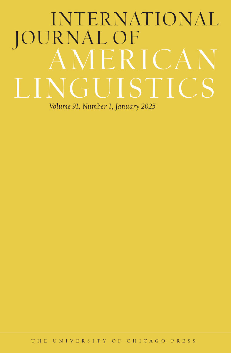 ABOUT THIS BOOKThis is volume 91 issue 1 of International Journal of American Linguistics. The International Journal of American Linguistics (IJAL) is dedicated to the documentation and analysis of the indigenous languages of the Americas. Founded by Franz Boas and Pliny Earle Goddard in 1917, the journal focuses on the linguistics of American Indigenous languages. IJAL is an important repository for research based on field work and archival materials on the languages of North and South America.