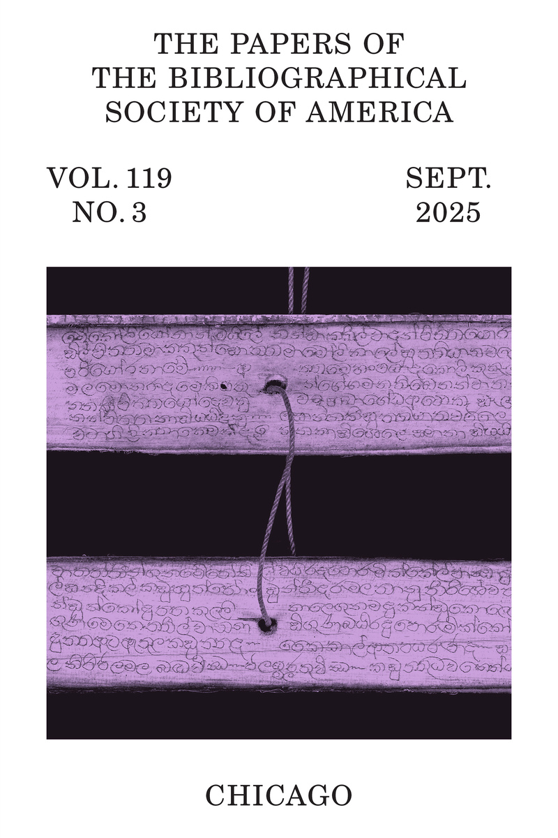 ABOUT THIS BOOKThis is volume 119 issue 3 of The Papers of the Bibliographical Society of America. Published on behalf of the oldest scholarly society in North America dedicated to the study of books and other textual artifacts in traditional and emerging formats, The Papers of the Bibliographical Society of America contains articles on book and manuscript production, publication, distribution, collecting, and reading in all periods, geographical regions, and media, as well as editorial and textual scholarship across all disciplines. The journal publishes original articles, book reviews, bibliographical notes, and review essays.