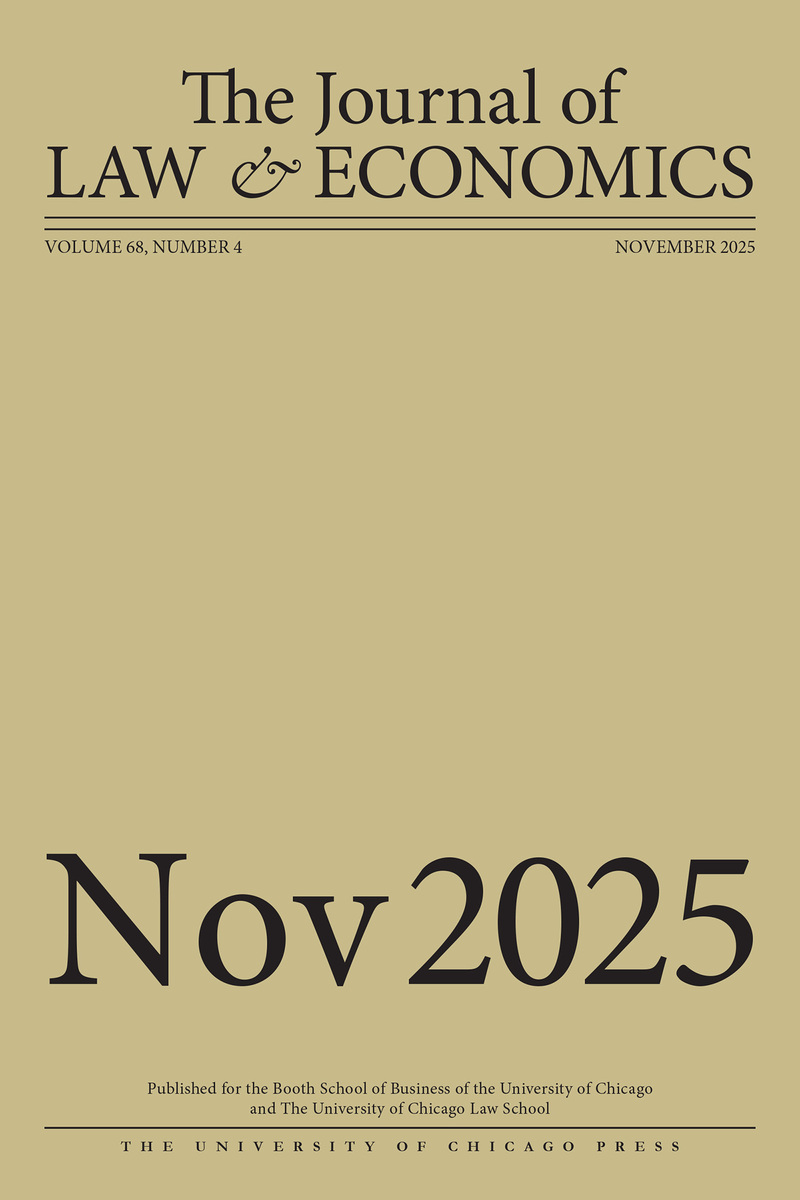 ABOUT THIS BOOKThis is volume 68 issue 4 of The Journal of Law and Economics. Established in 1958, the Journal of Law and Economics publishes research on a broad range of topics, including the economic analysis of law, the economic analysis of regulation and the behavior of regulated firms, industrial organization and antitrust policy, the political economy of legislation and legislative processes, law and finance, and corporate finance and governance. The JLE has published some of the most influential and widely cited articles in these areas. It is an invaluable resource for academics and those interested in cutting-edge analysis of current public policy issues.