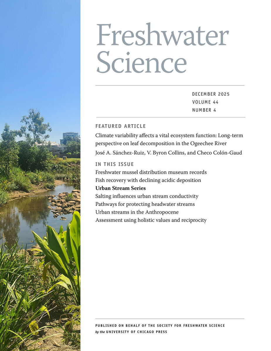 ABOUT THIS BOOKThis is volume 44 issue 4 of Freshwater Science. Freshwater Science (FWS) publishes articles that advance understanding and environmental stewardship of all types of inland aquatic ecosystems (lakes, rivers, streams, reservoirs, subterranean, and estuaries) and ecosystems at the interface between aquatic and terrestrial habitats (wetlands, riparian areas, and floodplains). The journal regularly features papers on a wide range of topics, including physical, chemical, and biological properties of lentic and lotic habitats; ecosystem processes; structure and dynamics of populations, communities, and ecosystems; ecology, systematics, and genetics of freshwater organisms, from bacteria to vertebrates; linkages between freshwater and other ecosystems and between freshwater ecology and other aquatic sciences; bioassessment, conservation, and restoration; environmental management; and new or novel methods for basic or applied research.