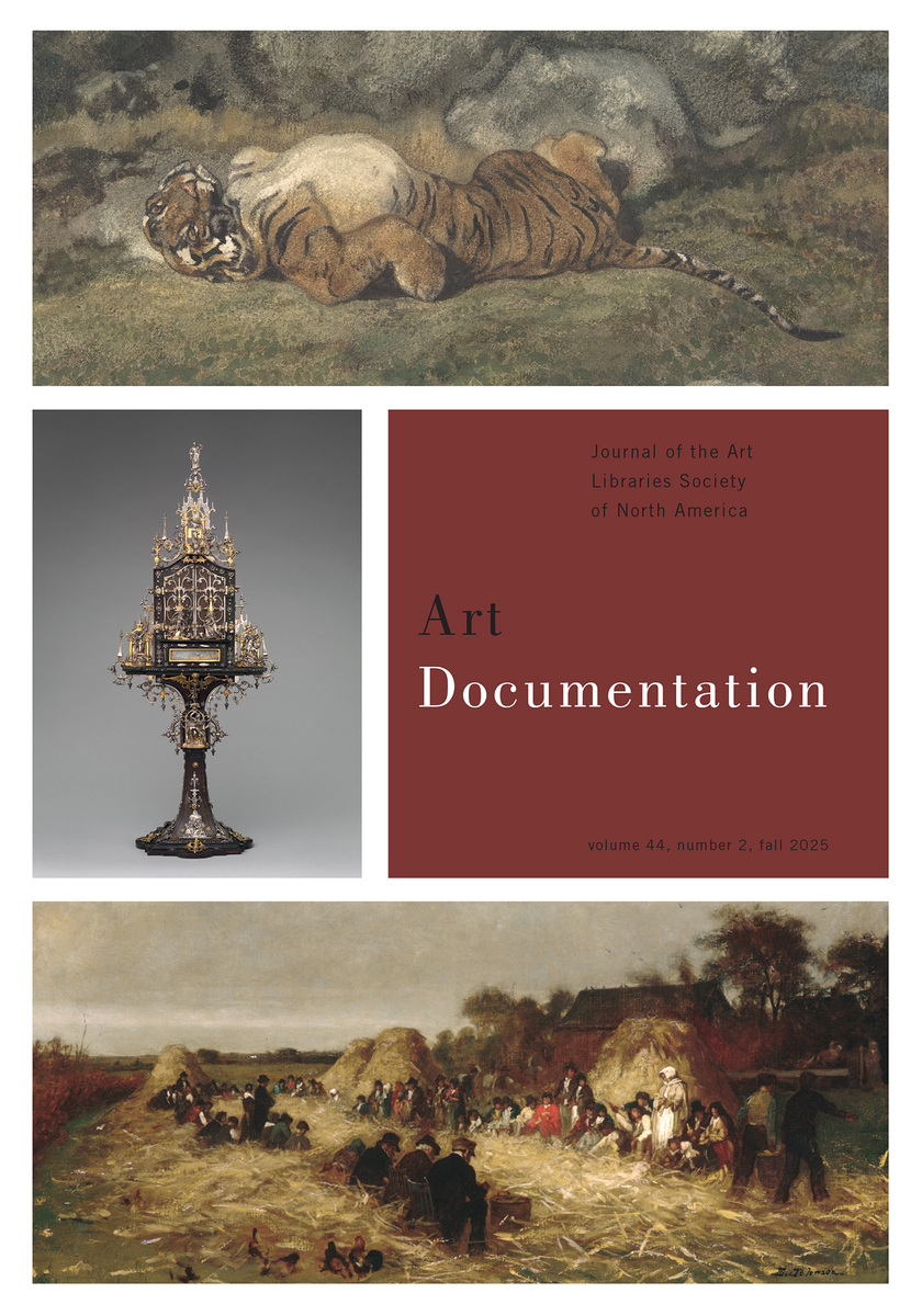 ABOUT THIS BOOKThis is volume 44 issue 2 of Art Documentation: Journal of the Art Libraries Society of North America. Art Documentation: Journal of the Art Libraries Society of North America is a peer-reviewed journal presenting issues of concern to librarians working within art history, art criticism, the history of architecture, archaeology, and similar areas. The journal has established itself as a vital publication for art information professionals, acting as a forum for issues relating to both the documentation of art and the practice and theory of art librarianship and visual resources curatorship. Art Documentation will publish articles pertinent to issues surrounding the documentation of art and the use of visual resources in academic and special libraries and museum settings. It is a key resource for professionals entering the field as well as those more seasoned professionals.