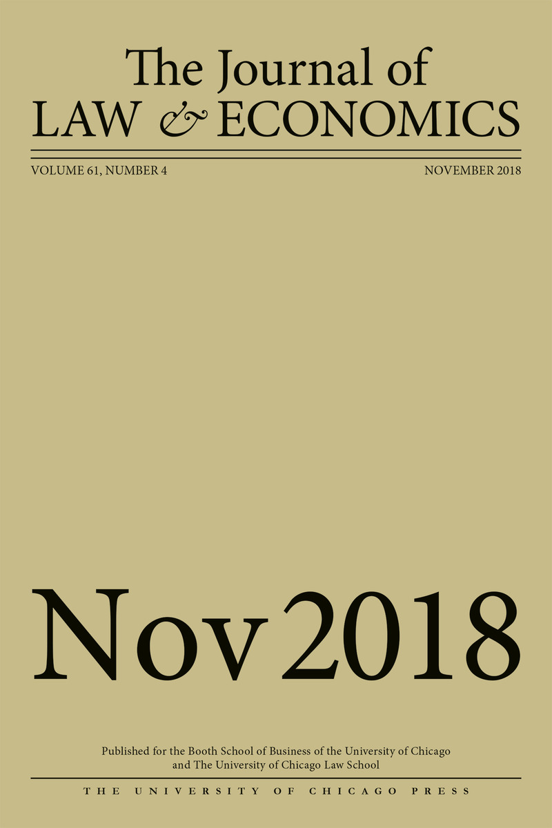 ABOUT THIS BOOKThis is volume 61 issue 4 of The Journal of Law and Economics. Established in 1958, the Journal of Law and Economics publishes research on a broad range of topics, including the economic analysis of law, the economic analysis of regulation and the behavior of regulated firms, industrial organization and antitrust policy, the political economy of legislation and legislative processes, law and finance, and corporate finance and governance. The JLE has published some of the most influential and widely cited articles in these areas. It is an invaluable resource for academics and those interested in cutting-edge analysis of current public policy issues.