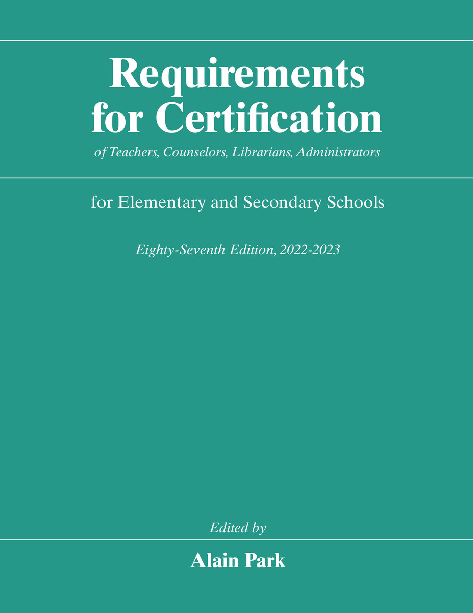 This annual volume offers the most complete and current listings of the requirements for certification of a wide range of educational professionals at the elementary and secondary levels. Requirements for Certification is a valuable resource, making much-needed knowledge available in one straightforward volume.