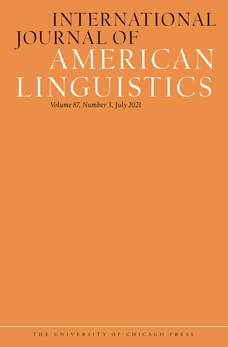 ABOUT THIS BOOKThis is volume 87 issue 3 of International Journal of American Linguistics. The International Journal of American Linguistics (IJAL) is dedicated to the documentation and analysis of the indigenous languages of the Americas. Founded by Franz Boas and Pliny Earle Goddard in 1917, the journal focuses on the linguistics of American Indigenous languages. IJAL is an important repository for research based on field work and archival materials on the languages of North and South America.