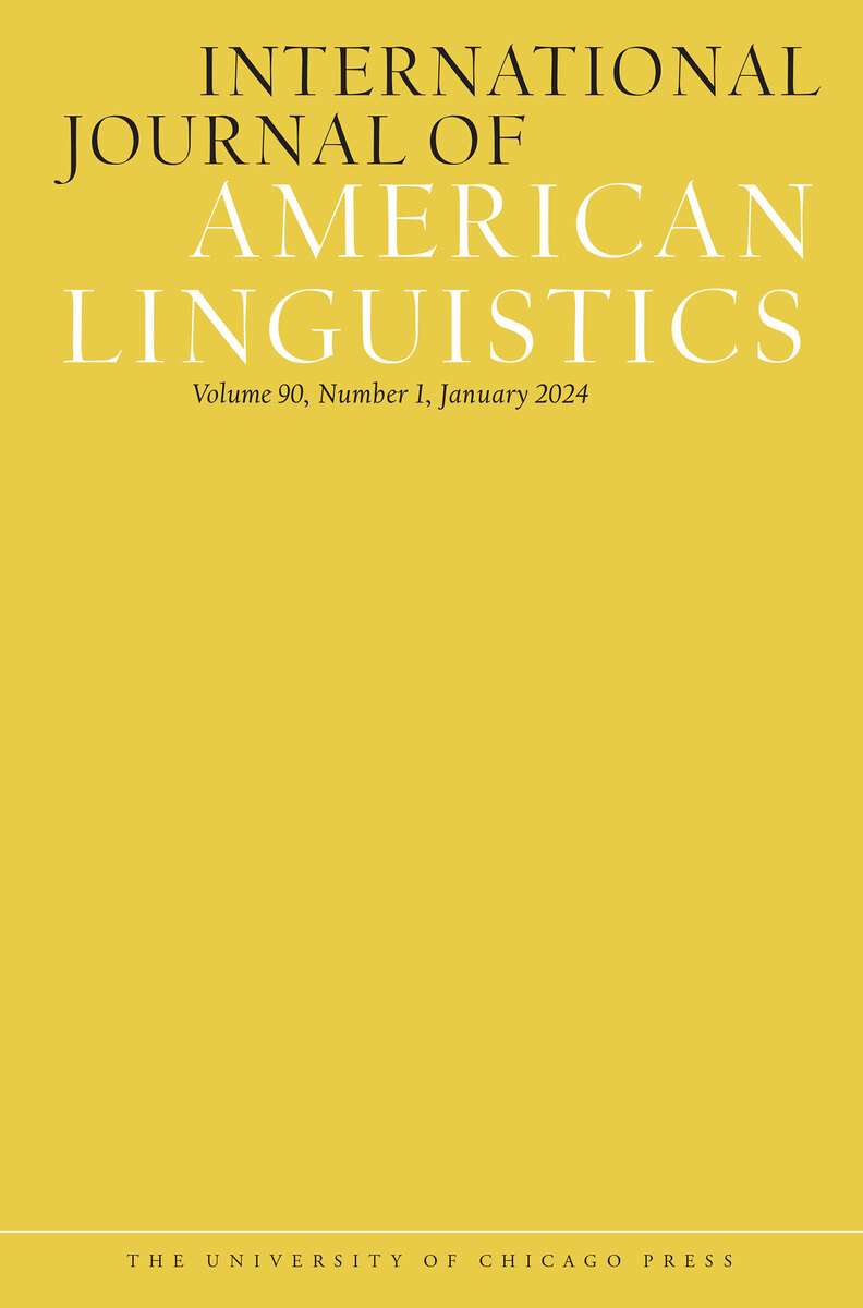 ABOUT THIS BOOKThis is volume 90 issue 1 of International Journal of American Linguistics. The International Journal of American Linguistics (IJAL) is dedicated to the documentation and analysis of the indigenous languages of the Americas. Founded by Franz Boas and Pliny Earle Goddard in 1917, the journal focuses on the linguistics of American Indigenous languages. IJAL is an important repository for research based on field work and archival materials on the languages of North and South America.