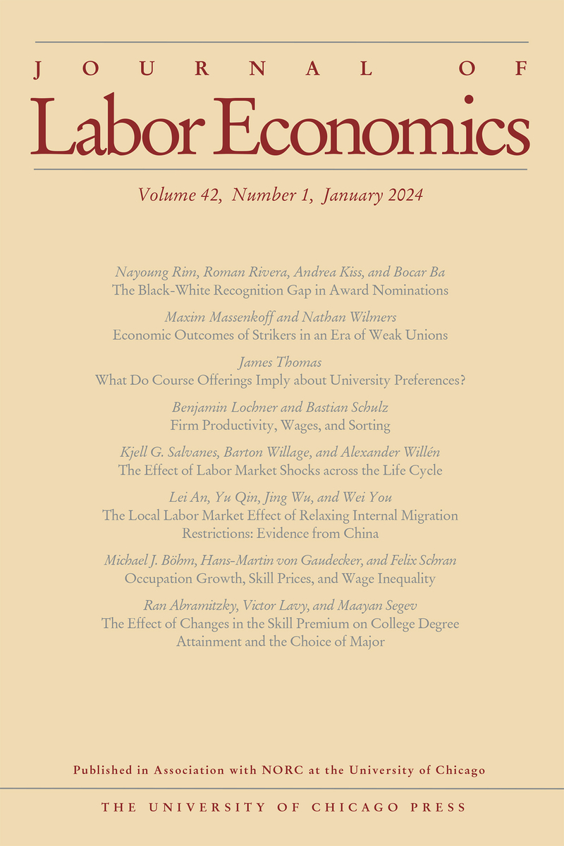 ABOUT THIS BOOKThis is volume 42 issue 1 of Journal of Labor Economics. Founded in 1983 as the first journal devoted specifically to labor economics, the Journal of Labor Economics (JOLE) presents international research on issues affecting social and private behavior, and the economy. JOLE’s contributors investigate various aspects of labor economics, including supply and demand of labor services, personnel economics, distribution of income, unions and collective bargaining, applied and policy issues in labor economics, and labor markets and demographics.