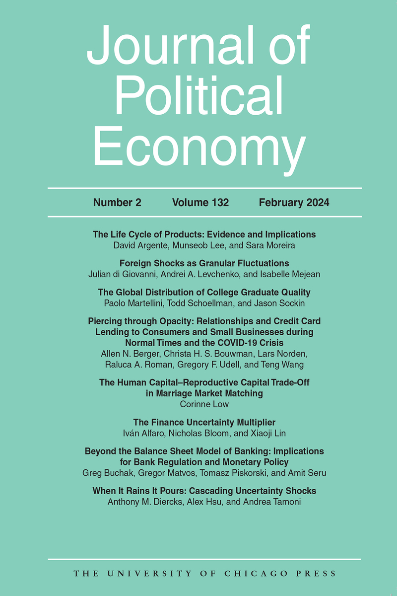 ABOUT THIS BOOKThis is volume 132 issue 2 of Journal of Political Economy. One of the oldest and most prestigious journals in economics, the Journal of Political Economy presents significant and essential scholarship in economic theory and practice. The journal publishes highly selective and widely cited analytical, interpretive, and empirical studies in a number of areas, including monetary theory, fiscal policy, labor economics, development, microeconomic and macroeconomic theory, international trade and finance, industrial organization, and social economics.