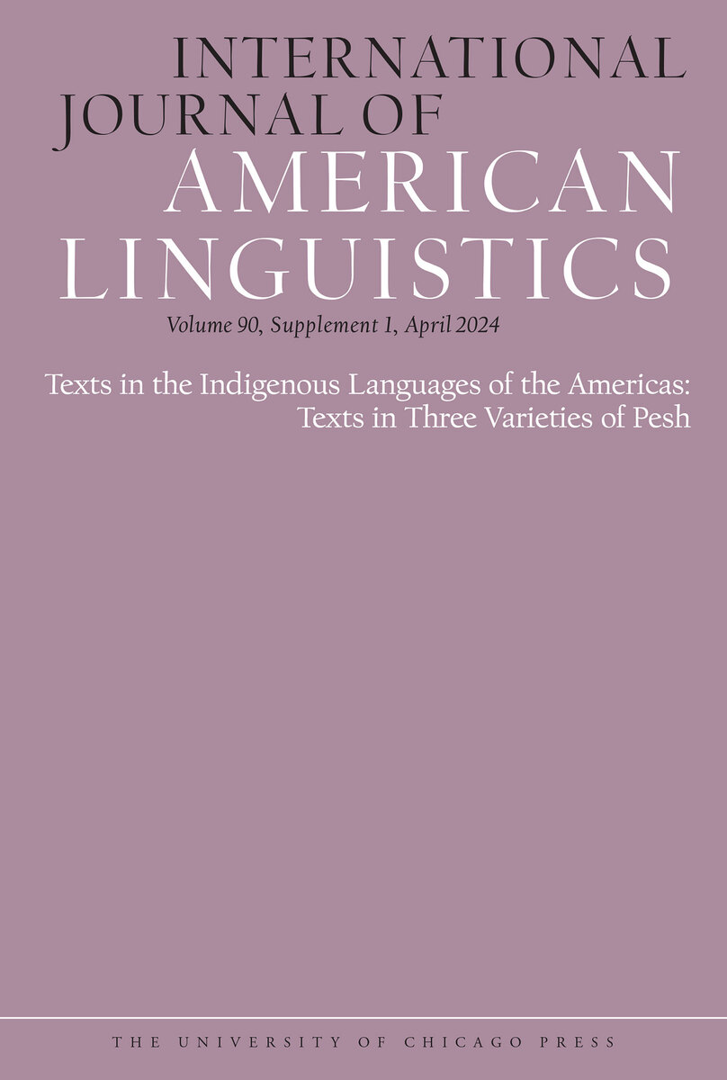ABOUT THIS BOOKThis is volume 90 issue S1 of International Journal of American Linguistics. The International Journal of American Linguistics (IJAL) is dedicated to the documentation and analysis of the indigenous languages of the Americas. Founded by Franz Boas and Pliny Earle Goddard in 1917, the journal focuses on the linguistics of American Indigenous languages. IJAL is an important repository for research based on field work and archival materials on the languages of North and South America.