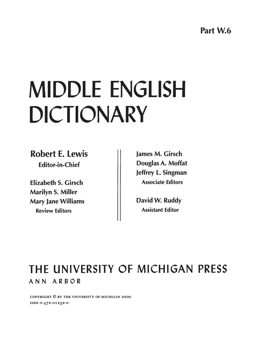 TheMiddle English Dictionary, a monumental scholarly endeavor that began more than fifty years ago, is completed with the publication of these remaining fascicles. The task of the editors compiling the dictionary is to document theE nglish language from just after the Norman Conquest up to the introduction of the printing press at the end of the 1400s. With that innovation the language became more or less standardized, but during the Middle Ages the language was evolving under the stress of events and social change, particularly as French culture was absorbed into the language. These were truly the formative years of the English language, and they present major challenges to lexicographers.