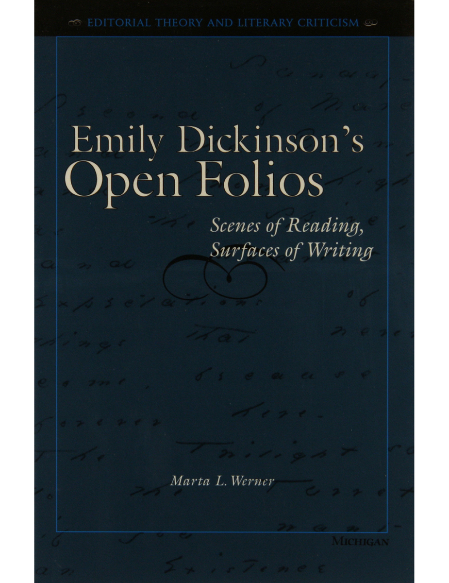 Emily Dickinson's Open Folios: Scenes of Reading, Surfaces of Writing is a fine facsimile edition and aesthetic exploration of a group of forty late drafts and fragments hitherto known as the "Lord letters." The drafts are presented in facsimile form on high-quality paper alongside typed transcriptions that reproduce as fully as possible the shock of script and startling array of visual details inscribed on the surfaces of the manuscripts.Werner argues that a redefinition of the editorial enterprise is needed to approach the revelations of these writings-- the details that have been all but erased by editorial interventions and print conventions in the twentieth century. Paradoxically, "un-editing" them allows an exploration of the relationship between medium and messages. Werner's commentary forsakes the claims to comprehensiveness generally associated with scholarly narrative in favor of a series of speculative and fragmentary "close-ups"--a portrait in pieces. Finally, she proposes the acts of both reading and writing as visual poems.A crucial reference for Dickinson scholars, this book is also of primary importance to textual scholars, editorial theorists, and students of gender and cultural studies interested in the production, dissemination, and interpretation of works by women writers.This publication has been supported by a grant from the National Endowment for the Humanities.