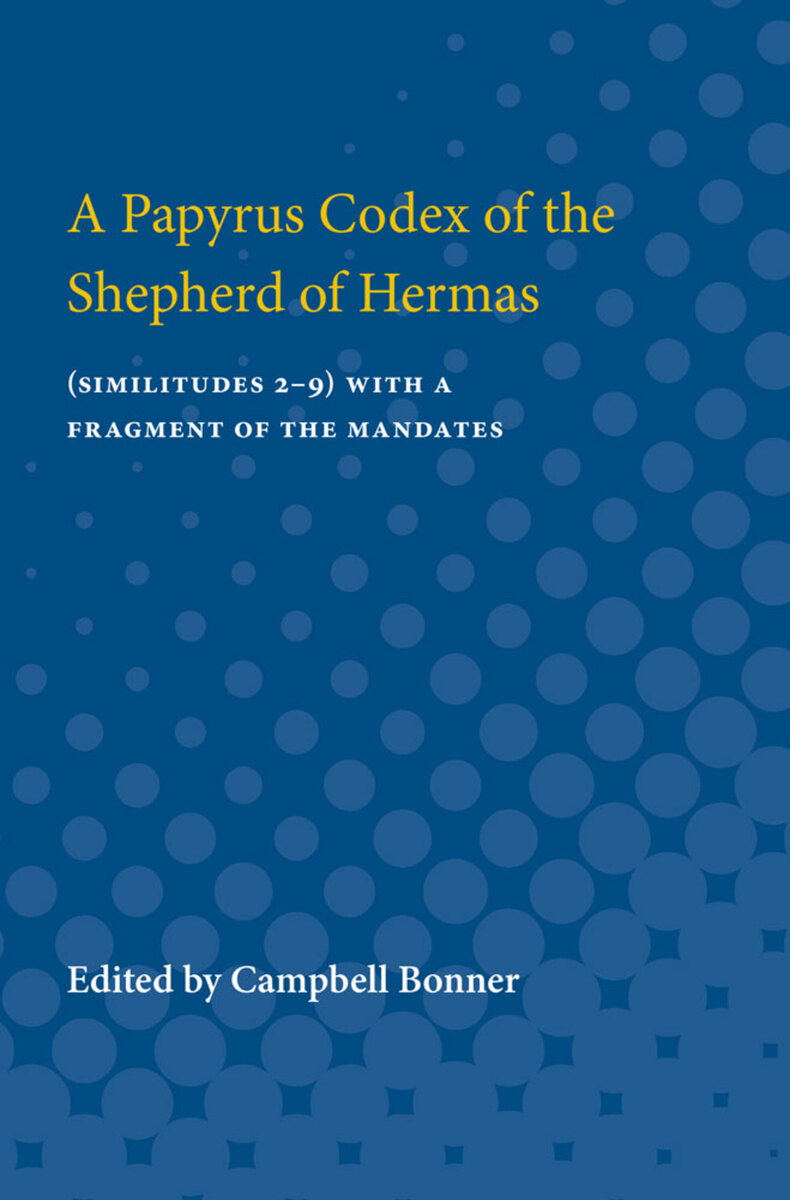 ABOUT THIS BOOKA Papyrus Codex of the Shepherd of Hermas presents a publication of a manuscript of The Shepherd of Hermas, a Christian religious text of generally the first century CE. The author documents its condition and date, presentational conventions, spelling and grammatical forms, and so on. It offers a text together with supplementary notes.