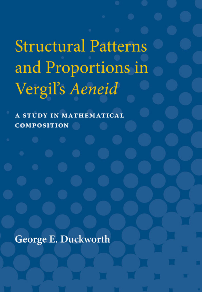 ABOUT THIS BOOKm/M = M/(M + m) = 1/2 (v5 - 1) = .618 = the key to the most exciting discovery in the history of Vergilian criticism.As a result of intensive research and study in the poetry of Vergil, George Duckworth has made a remarkable find: Vergil, as well as other poets of his century, deliberately used the Golden Mean ratio to give mathematical symmetry to the structure of his poetry.The author gives a full and critical account of the scholarship, which up to now has been devoted to the construction of the Aeneid. In turn, he traces the Golden Mean ratio—famous in mathematics, art, and architecture—everywhere in the main divisions and subdivisions, in the short speeches, and in the long narrative units of the Aeneid.Duckworth proves with his data that consecutive units of the epic are proportionate to one another in the ratio .618. With the longer and shorter passages denoted as M (major) and m (minor), the exact ratio is: m/M = M/(M + m) = 1/2 (v5 - 1) = .618, being achieved most frequently by the Fibonacci series in which each number is the sum of the two preceding numbers.This extraordinary book provides a new awareness of the marvelous structure of Vergil's poetry. It is an essential text for resolving the disputed passages in Vergil. George Duckworth has pioneered a structural analysis that will not only make obsolete much Vergilian criticism but will, in addition, serve as a basis for future research.