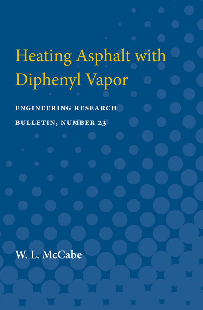 ABOUT THIS BOOKIn the research reported in this Bulletin, asphalt was heated, on a semi-commercial scale, by means of condensing diphenyl vapor. The asphalt was pumped through the inside of the heating tube, and condensing diphenyl surrounded the tube. It was found that this method of heating was entirely practical from a mechanical and control point of view, that the quality of the asphalt was not impaired to the slightest degree even under extreme heating conditions, and that overall heat transfer coefficients of 31 to 44 B.t.u. per hr. per sq. ft. per °F. can easily be obtained. The observed film coefficients of heat transfer on the asphalt and diphenyl sides of the heating surface were found to be reasonably consistent with existing heat transfer theories for analogous cases.