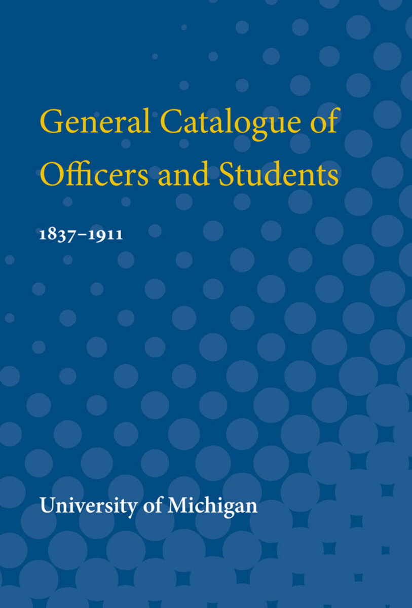 ABOUT THIS BOOKThis edition of The General Catalogue of Officers and Students of the University of Michigan follows closely the plan of the edition of 1902. Part I presents the names of all Officers of the University from the organization of the first Board of Regents in 1837 to December 31, 1911; it has been divided into appropriate groups and arranged in chronological order according to date of original appointment. Part II presents the names of all graduates of the University down to the same date; it is arranged alphabetically by classes under each Department of the University. Part III presents the names of all students who matriculated before September 1907, and who have not taken a degree here as well as names of deceased students who matriculated after that date; it has been arranged under one alphabet rather than by departments and classes, for the obvious reason that no precise arrangement of that kind was possible.