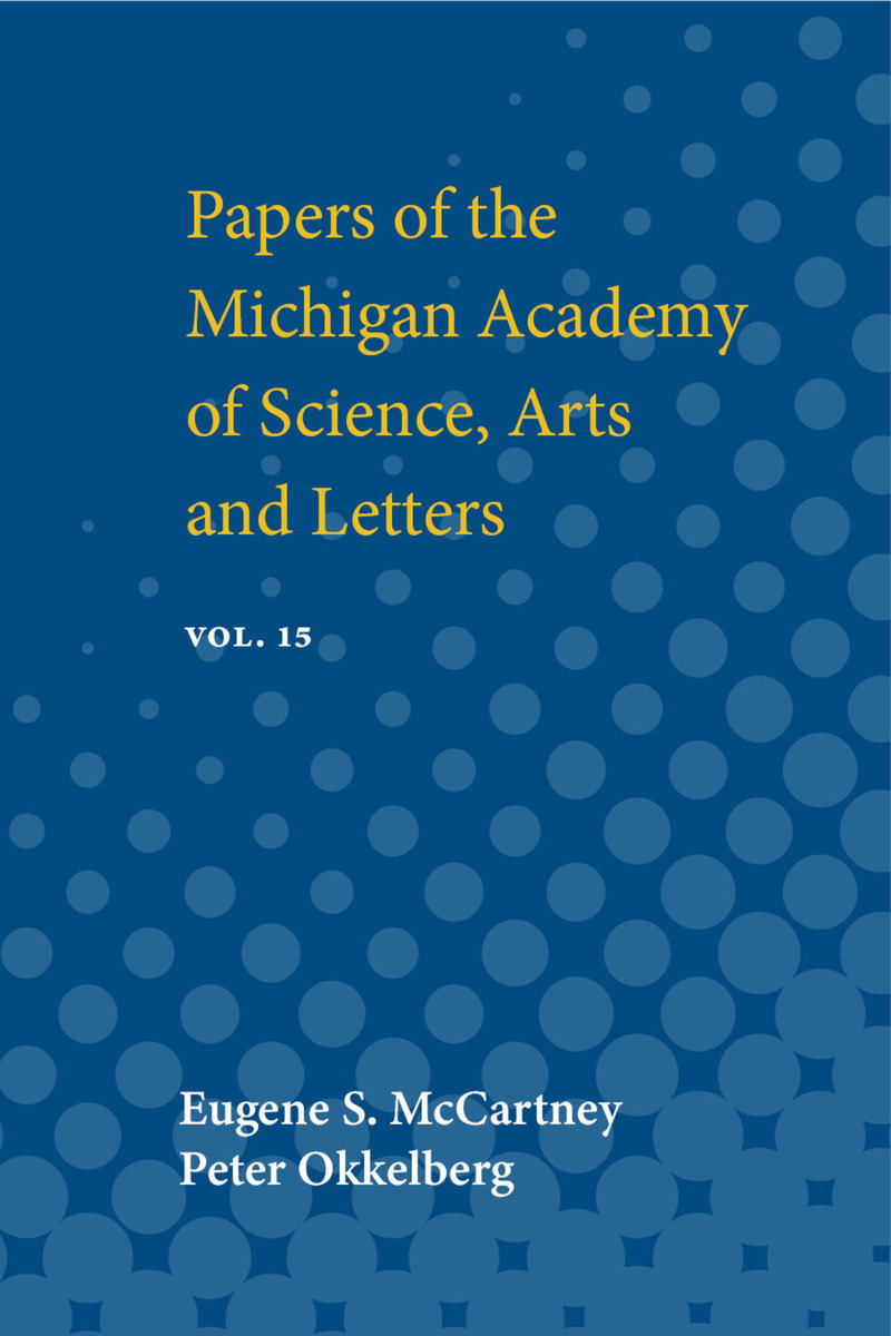 ABOUT THIS BOOKThe Papers of the Michigan Academy of Science, Arts and Letters is an annual volume of papers published under the joint direction of the Council of the Academy and of the Executive Board of the Graduate School of the University of Michigan, and edited by Eugene S. McCartney and Peter Okkelberg. The agreement to publish jointly was an opportunity to establish closer relations between the University and the Academy, thus contributing to higher scholarship and original investigation. This volume from the 1931 annual meeting includes an array of papers on Botany, Forestry, and Zoology.