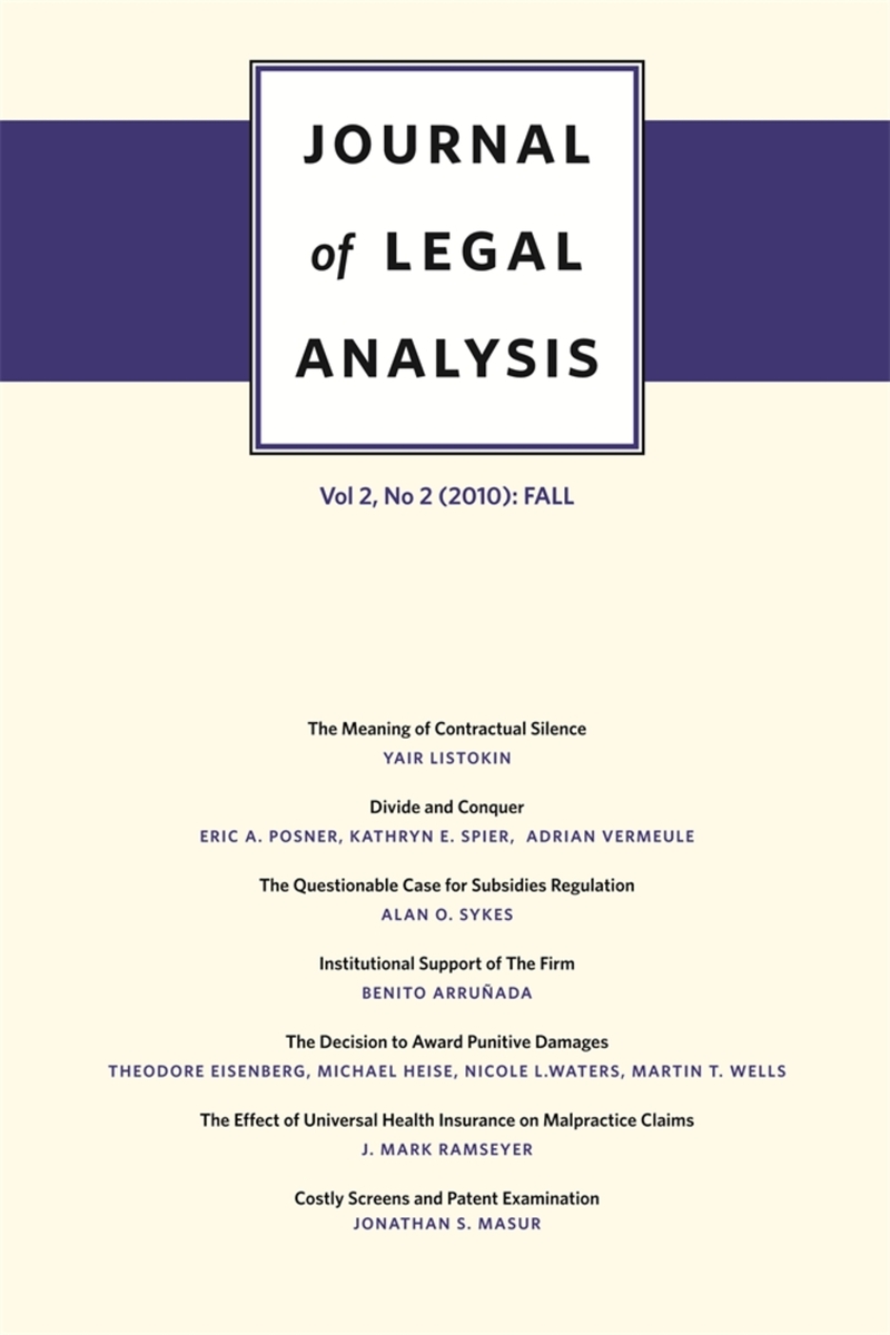 Volume 2, Issue 2 contains contributions from Yair Listokin, Eric Posner, Kathryn Spier, Adrian Vermeule, Alan Sykes, Benito Arruñada, Theodore Eisenberg, Michael Heise, Ncole Waters & Martin Wells, J. Mark Ramseyer, and Jonathan Masur.