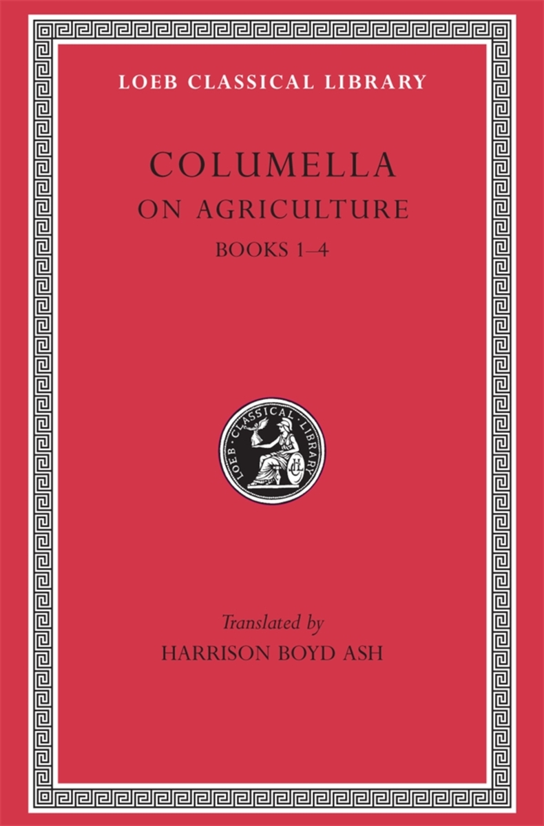 Columella’s On Agriculture (De re rustica) is the most comprehensive, systematic, and detailed of Roman agricultural works. Book 1 covers choice of farming site; water supply; buildings; staff. 2: Plowing; fertilizing; care of crops. 3–5: Cultivation, grafting, and pruning of fruit trees, vines, and olives. 6: Acquisition, breeding, and rearing of oxen, horses, and mules; veterinary medicine. 7: Sheep, goats, pigs, and dogs. 8: Poultry; fish ponds. 9: Bee-keeping. 10 (in hexameter poetry): Gardening. 11: Duties of the overseer of a farm; calendar for farm work; more on gardening. 12: Duties of the overseer’s wife; manufacture of wines; pickling; preserving. There is also a separate treatise, Trees (De arboribus), on vines and olives and various trees, perhaps part of an otherwise lost work written before On Agriculture.