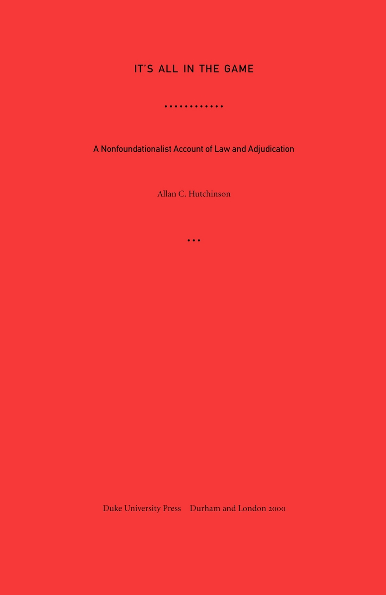 It’s All in the Game: What should judges do? What do judges do? What can judges do? Contrasting his own answers to traditional responses and moving playfully between debates of high theory, daily practices of appellate judges, and his own enlightening analyses of significant court rulings, Allan C. Hutchinson examines what it means to treat adjudication as an engaged game of rhetorical justification. His resulting argument enables the reader to grasp more fully the practical operation, political determinants, and the transformative possibilities of law and adjudication.