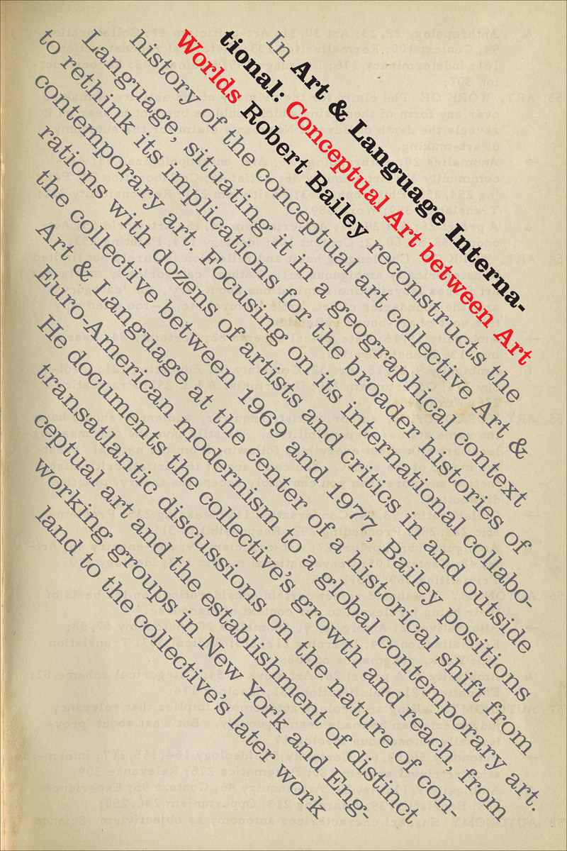 In Art & Language International Robert Bailey reconstructs the history of the conceptual art collective Art & Language, situating it in a geographical context to rethink its implications for the broader histories of contemporary art. Focusing on its international collaborations with dozens of artists and critics in and outside the collective between 1969 and 1977, Bailey positions Art & Language at the center of a historical shift from Euro-American modernism to a global contemporary art. He documents the collective’s growth and reach, from transatlantic discussions on the nature of conceptual art and the establishment of distinct working groups in New York and England to the collective’s later work in Australia, New Zealand, and Yugoslavia. Bailey also details its publications, associations with political organizations, and the internal power struggles that precipitated its breakdown. Analyzing a wide range of artworks, texts, music, and films, he reveals how Art & Language navigated between art worlds to shape the international profile of conceptual art. Above all, Bailey underscores how the group's rigorous and interdisciplinary work provides a gateway to understanding how conceptual art operates as a mode of thinking that exceeds the visual to shape the philosophical, historical, and political.