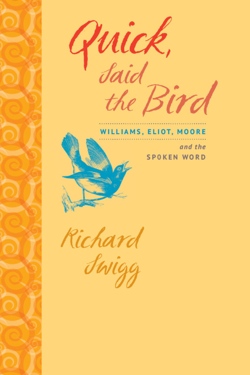 When William Carlos Williams said, “It’s all in / the sound,” when T. S. Eliot hailed the invigorating force of the “auditory imagination,” or when Marianne Moore applauded “the clatter and true sound” of Williams’s verse, each poet invoked the dimension that bound them together. In Quick, Said the Bird, Richard Swigg makes the case for acoustics as the basis of the linkages, kinships, and inter-illuminations of a major twentieth-century literary relationship. Outsiders in their home terrain who nevertheless continued to reach back to their own American vocal identities, Williams, Eliot, and Moore embody a unique lineage that can be traced from their first significant works (1909–1918) to the 1960s.