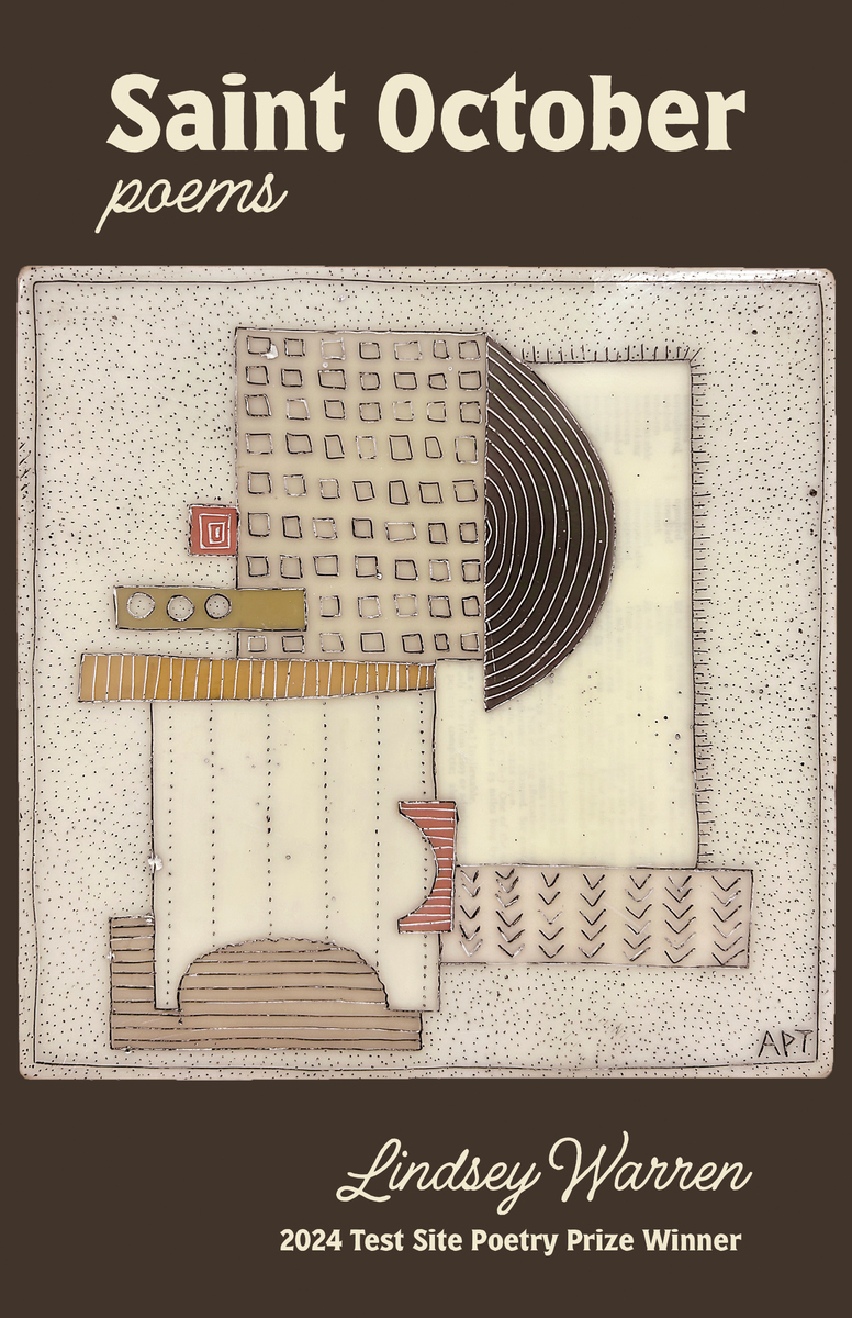 “Lucie Brock-Broido said that the magic of a book of poetry usually occurs in threes . . . I believe wholly in the slim volume of verse, I believe in the slim everything, I like the trees to be slim in October. Lindsey Warren's Saint October is just such a three-part, sixty-some-odd-page wonder, populated by poems that Celan their way through compound neologisms (beebrown! wormchews! transblue!!), living largely on Quadrant II of the page—that top-left corner, negative in one dimension, insuppressibly positive in the other. Warren's poems are spoken from the inflection point between ecology and astronomy, reminding us that the gaps "between released / leaves" partake of the same void as "heaven's black cabinets" and the "alongside of human stars that whirl / and feel you"—and how feeling, too, is a function of those gaps between atoms that we don't even traverse when we touch. As one poem's speaker has it, "I wrestle / it until / it blesses / me"—and though we're not the angel in the ring, we can hear the singing, the "Seeping", these divine ‘sounds / in the eye.’”