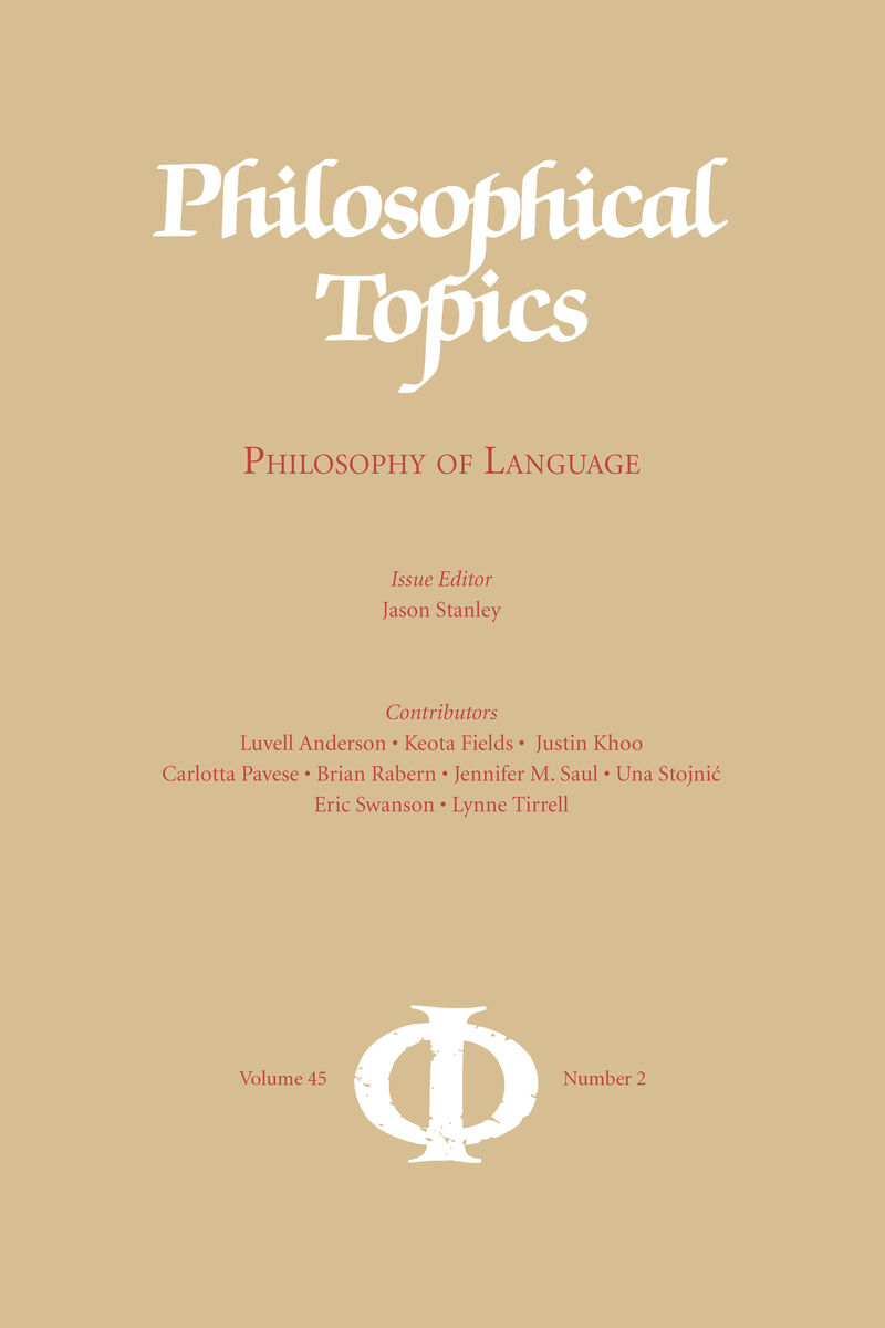 Contributors: Luvell Anderson, Keota Fields, Justin Khoo, Carlotta Pavese, Brian Rabern, Jennifer M. Saul, Una Stojnic, Eric Swanson, Lynne Tirrell