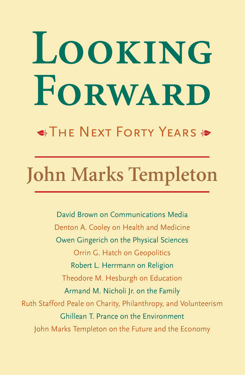“John Marks Templeton has achieved exemplary success in both business and philanthropy. For Looking Forward he has assembled a diverse and remarkable group of experts in their fields—including the environment, medicine, the physical sciences, religion, the family, and international relations—and contributed two stellar pieces as well. Together these essays dispel fashionable pessimism and show how the world can progress—and is progressing—toward a better future.” —Rupert Murdoch