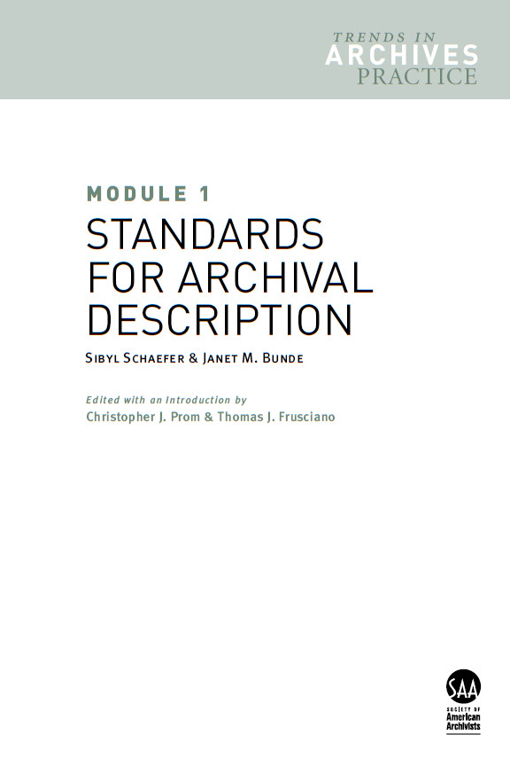 Module 1 in the series, STANDARDS FOR ARCHIVAL DESCRIPTION, untangles the history of standards development and provides an overview of descriptive standards that an archives might wish to use.