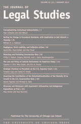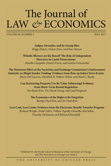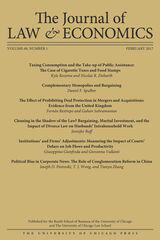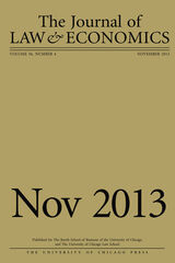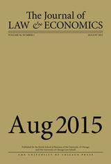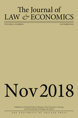 University of Chicago Press Journals, 2018 This is volume 61 issue 4 of The Journal of Law and Economics. Established in 1958, the Journal of Law and Economics publishes research on a broad range of topics, including the economic analysis of law, the economic analysis of regulation and the behavior of regulated firms, industrial organization and antitrust policy, the political economy of legislation and legislative processes, law and finance, and corporate finance and governance. The JLE has published some of the most influential and widely cited articles in these areas. It is an invaluable resource for academics and those interested in cutting-edge analysis of current public policy issues.