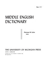University of Michigan Press, 1985 The most important modern reference work for Middle English studies