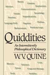 Moving from A (alphabet) to Z (zero), Quiddities roams through more than eighty topics, each providing a full measure of piquant thought, wordplay, and wisdom, couched in easy and elegant prose—“Quine at his unbuttoned best,” in Donald Davidson’s words. Philosophy, language, and mathematics are the subjects most fully represented; tides of entries include belief, communication, free will, idiotisms, longitude and latitude, marks, prizes, Latin pronunciation, tolerance, trinity. Even the more technical entries are larded with homely lore, anecdote, and whimsical humor.