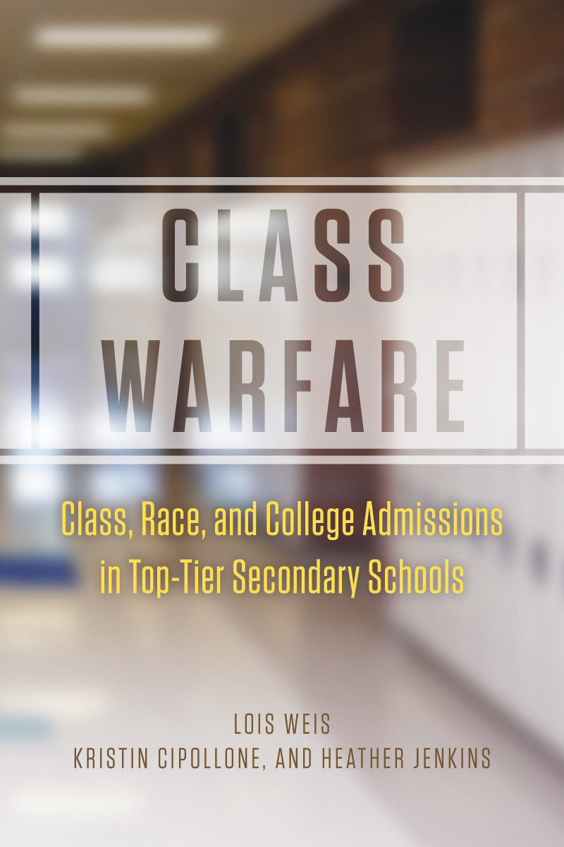 Stories abound about the lengths to which middle- and upper-middle-class parents will go to ensure a spot for their child at a prestigious university. From the Suzuki method to calculus-based physics, from AP tests all the way back to early-learning Kumon courses, students are increasingly pushed to excel with that Harvard or Yale acceptance letter held tantalizingly in front of them. And nowhere is this drive more apparent than in our elite secondary schools. In Class Warfare, Lois Weis, Kristin Cipollone, and Heather Jenkins go inside the ivy-yearning halls of three such schools to offer a day-to-day, week-by-week look at this remarkable drive toward college admissions and one of its most salient purposes: to determine class.